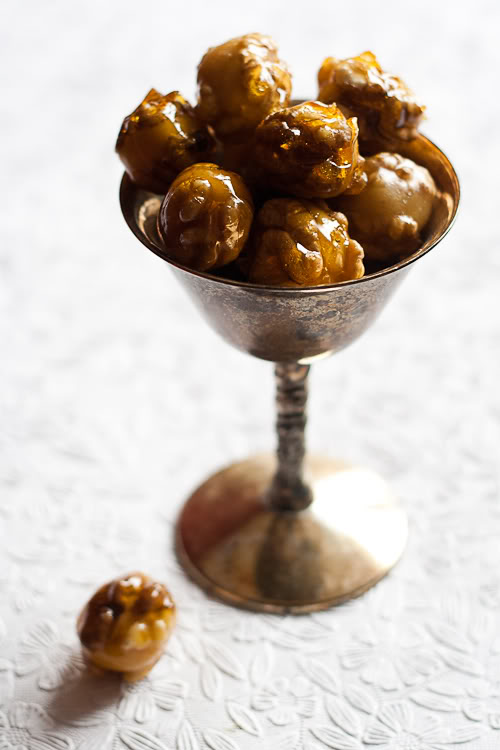 Napravite karamel od šećera. Umočite svaki «orah» u karamel.