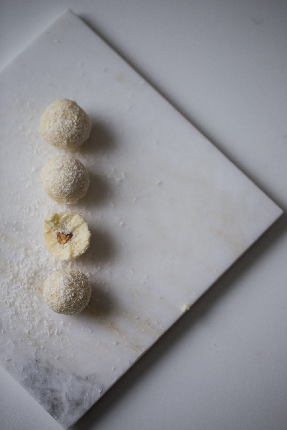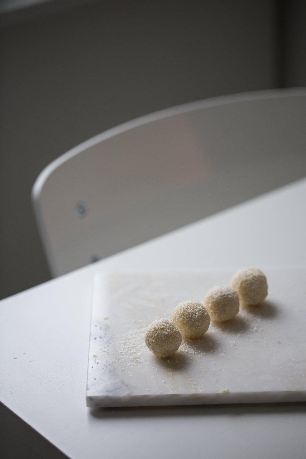 Vadite žličicom smjesu i oblikujte kuglice pa ih zatim uvaljajte u kokos.
